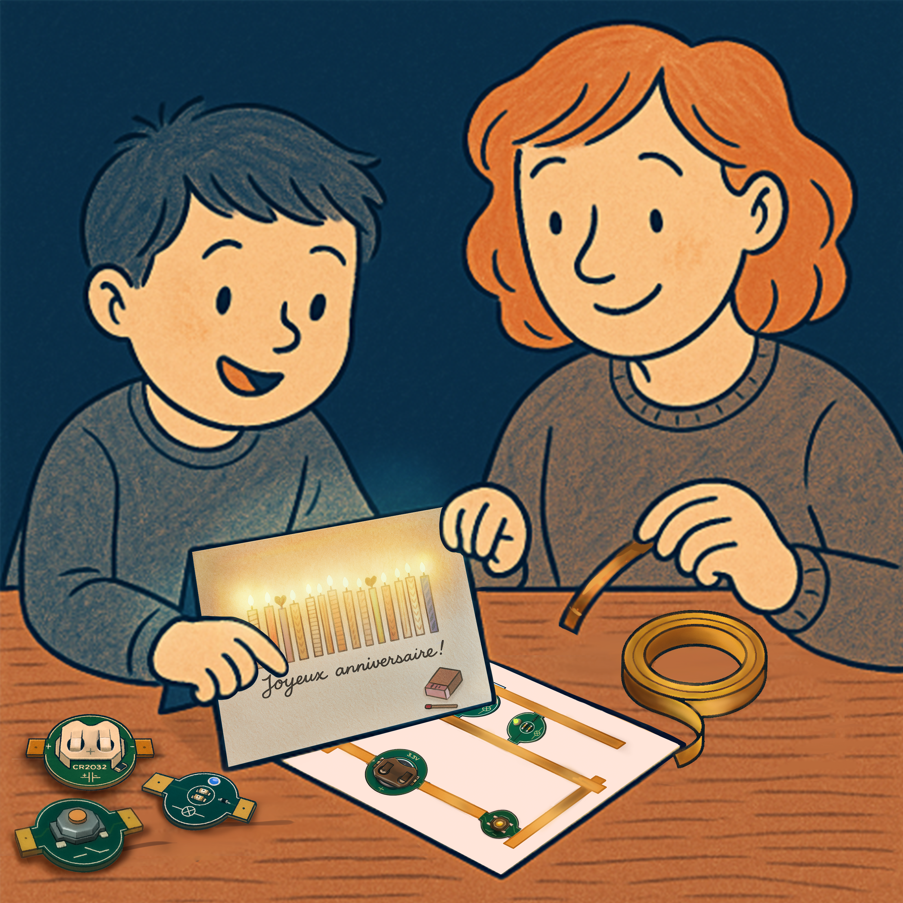 Découvrez ou faites découvrir les seuls kits de loisir créatif permettant de réaliser des cartes lumineuses.